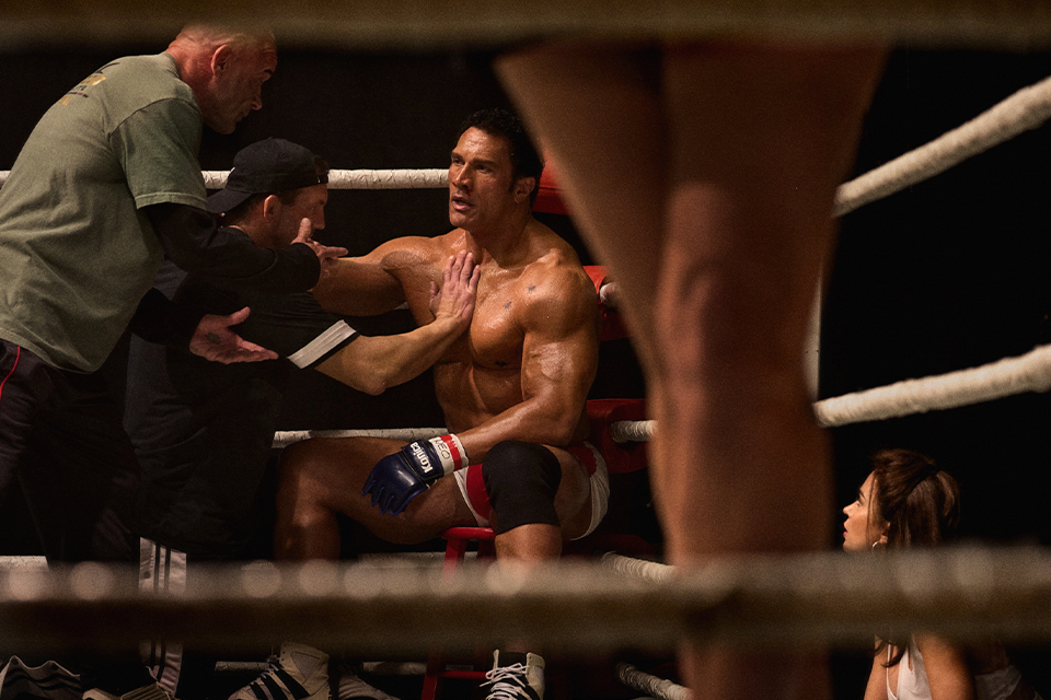 La película traza su caída en la adicción, un laberinto de dolor físico y mental que comienza a desmantelar su vida. Es aquí donde la narrativa se despega del cliché deportivo para convertirse en un retrato íntimo de la fragilidad humana.